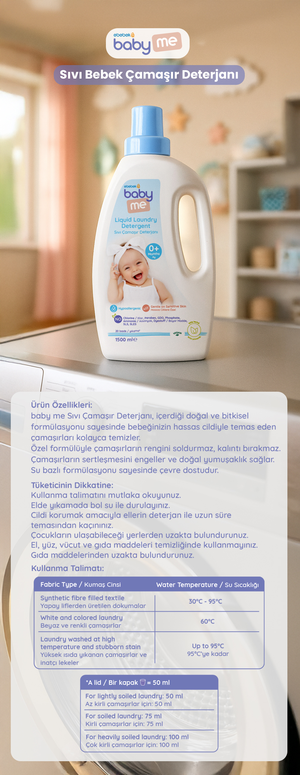 baby me Sıvı Bebek Çamaşır Deterjanı 1500 ml