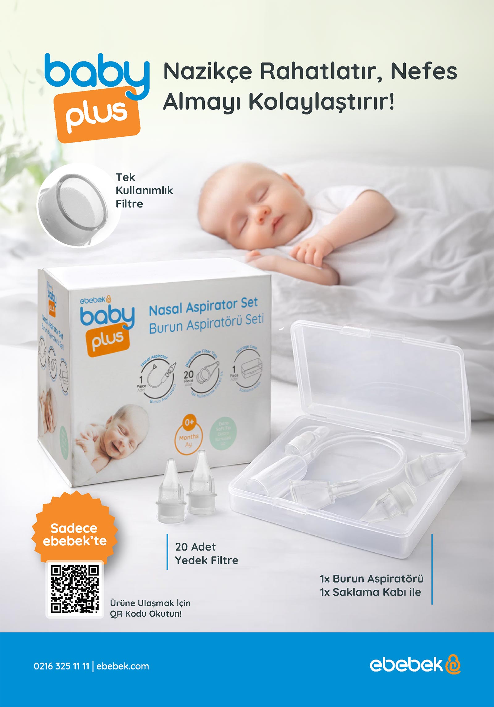 Bebeklerin konfor ve sağlığı için tasarlanan Baby Plus burun aspiratörü seti  burun tıkanıklığını nazikçe giderir; rahat nefes almayı, huzurlu beslenmeyi ve kesintisiz uyumayı destekler. Burun salgılarını etkili şekilde temizleyerek olası kulak ve sinüs enfeksiyonlarını önlemeye yardımcı olur. Ergonomik tasarımı, yumuşak uçları ve BPA ve ftalat içermeyen yapısı sayesinde bebeğinizin hassas burnuna nazik davranır, hijyen tek kullanımlık filtrelerle korunur.