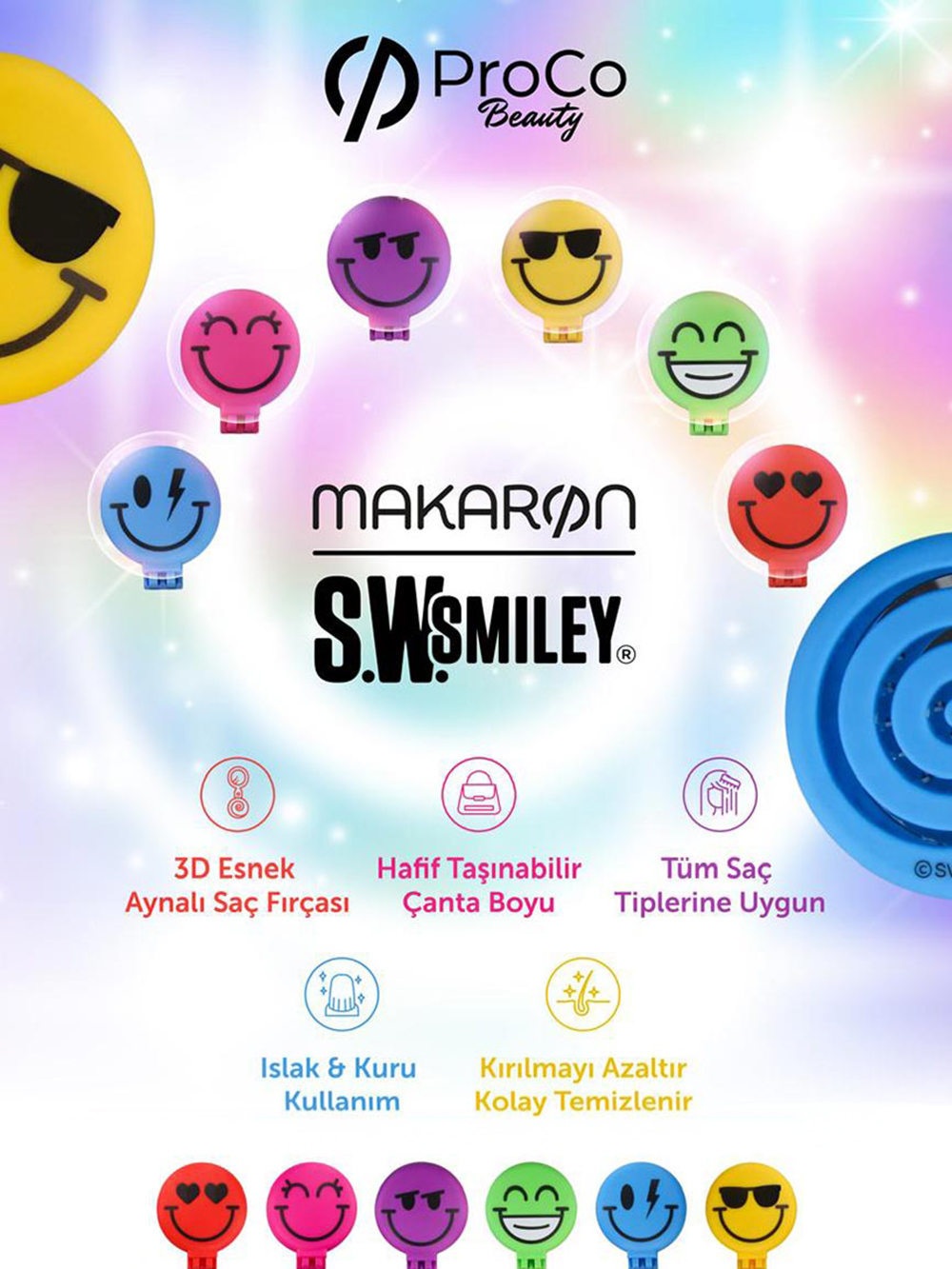 ProCo Beauty Makaron Saç Fırçası Smiley Sürpriz Paket